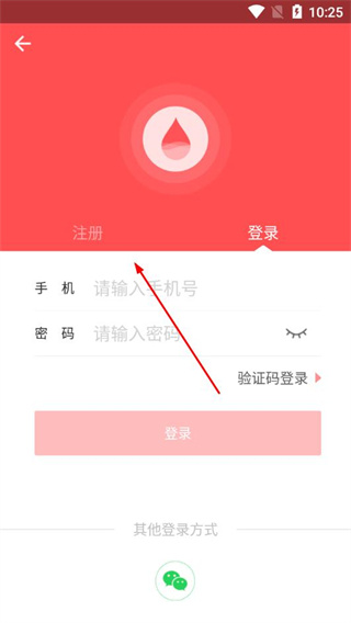 1、在今日献血的献血提醒页面,点击登陆/注册。