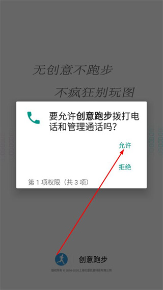 1、打开创意跑步app,在权限请求弹窗中点击允许。