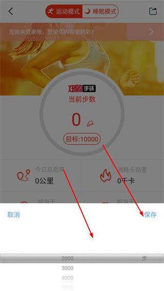 3、在弹出的设置界面调整目标步数,完成后点击保存。