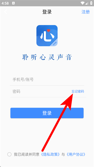 1、打开我的咨询室,在登录界面,点击忘记密码。