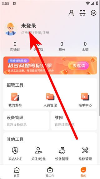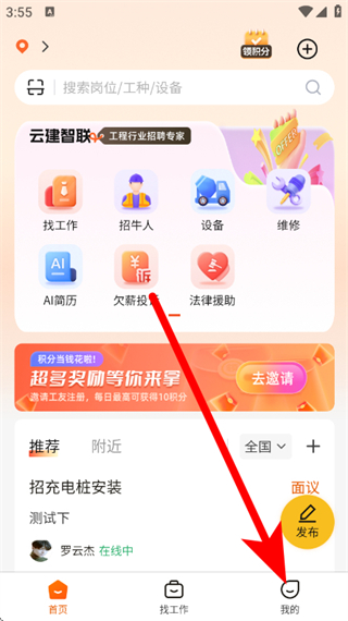 1、打开云建智联,点击底部的我的,进入我的页面。