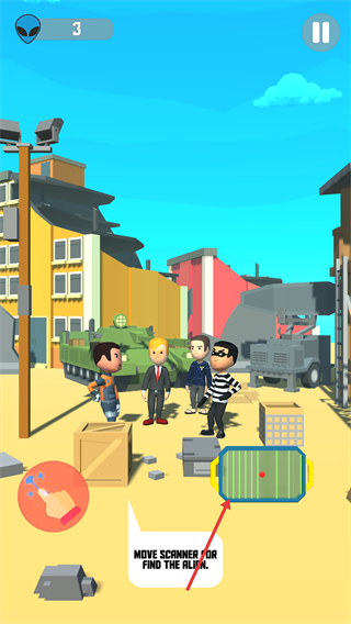 3、操作扫描器对准场景中的人物,当扫描器显示外星人轮廓时,确认这是需捕捉的目标,继续推进捕捉环节。