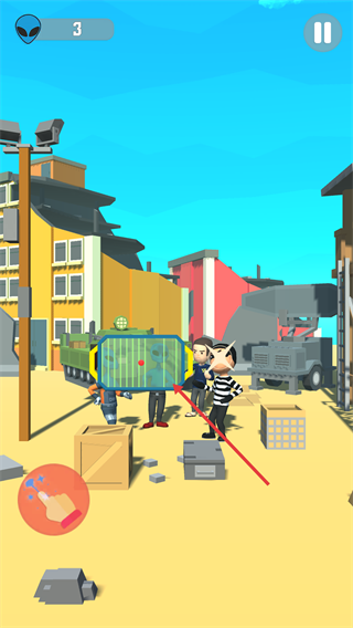 1、以弓箭瞄准射击捕获外星人为核心玩法,调整射击角度应对移动隐藏目标,主打精准瞄准趣味挑战。