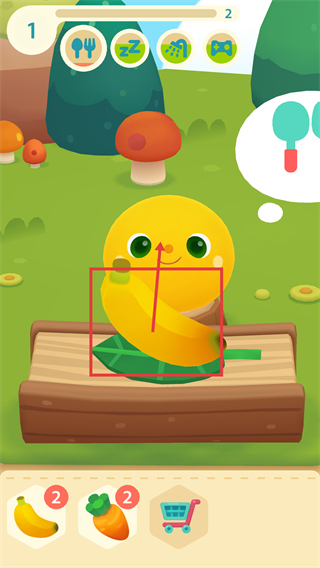 2、进入互动场景,点击标注的香蕉,匹配上方餐具类需求标识,满足角色的进食需求,推进本次互动的流程。
