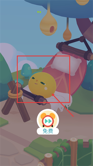 4、角色移动到吊床后,点击标注的【免费】按钮,让角色进入休息状态,完成本次照顾类互动的收尾环节。